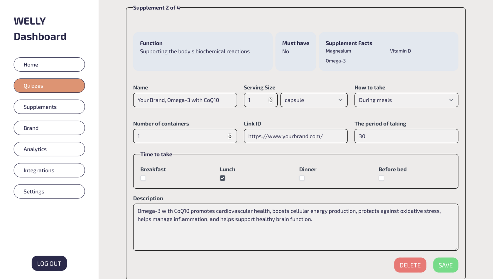 Welly offers detailed insights into the selected supplements, their benefits, and usage guidelines, building trust in your brand.